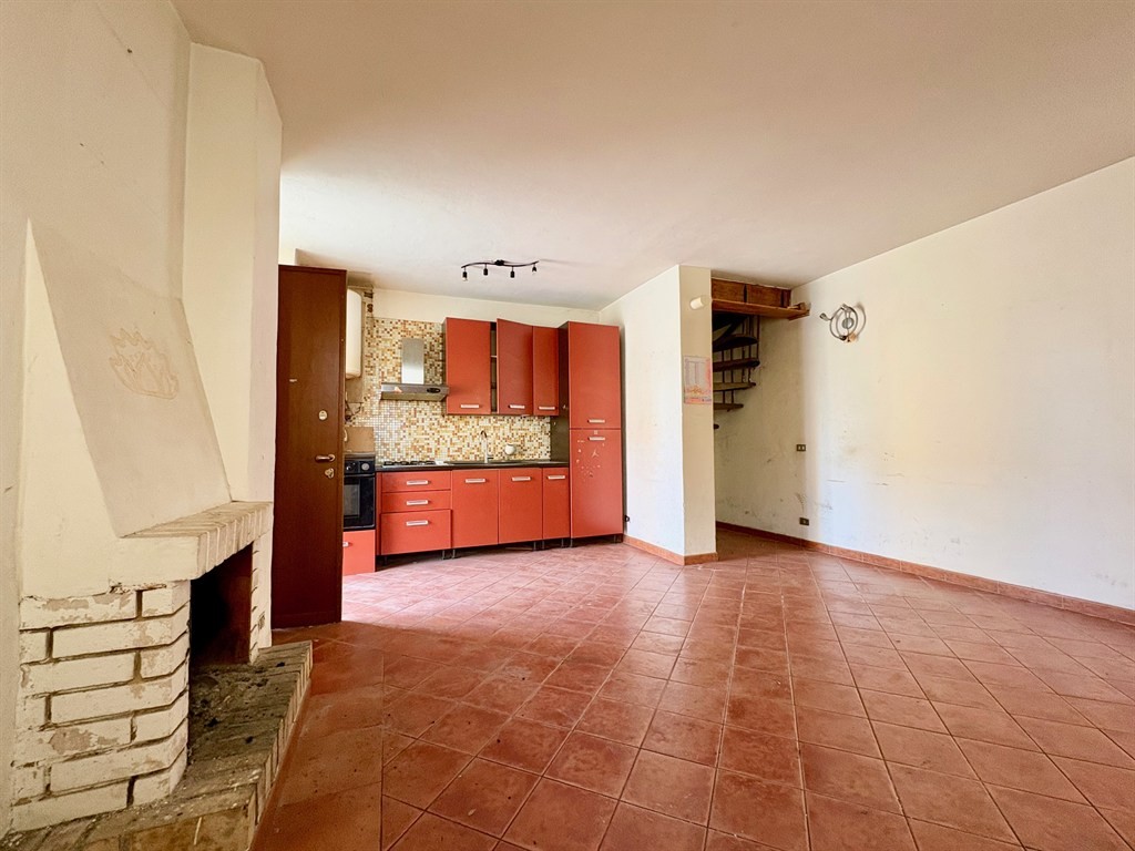 AL PIANO TERRA, troviamo un ampio locale con angolo cottura e caminetto, facilmente organizzabile come zona giorno confortevole;
