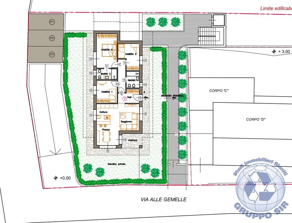 il progetto prevede la costruzione di tre appartamenti indipendenti di quattro locali, tutti con giardini, terrazzi e box doppi. Naturalmente, il progetto è modificabile su indicazioni del futuro proprietario. la proposta è rivolta sia a imprese di costruzione sia a chi è alla ricerca di un terreno per edificare la sua prossima residenza.
