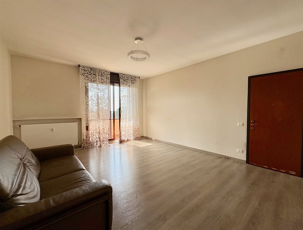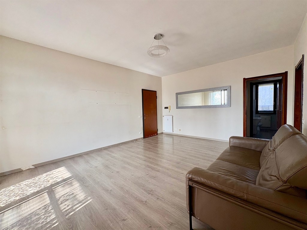 L’ingresso si apre direttamente su un ampio soggiorno, ben illuminato, affiancato da una cucina abitabile di generose dimensioni.