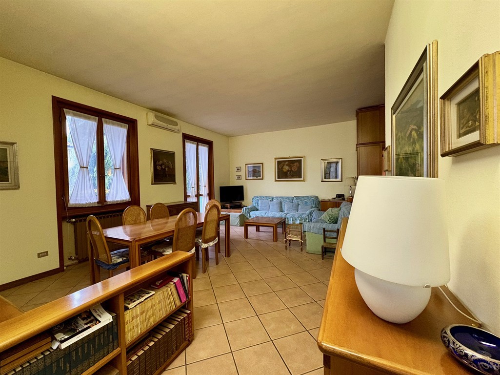 Completa la proprietà un ampio giardino privato, al quale si accede solo dall'ingresso dell'appartamento, scendendo alcuni scalini. Essendo l'appartamento al primo piano, non ci sono uscite dirette ad esso dai singoli locali!