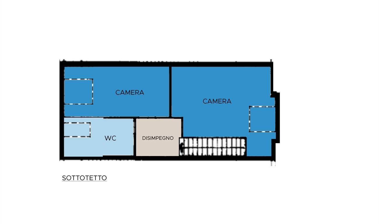 Il quarto piano mansardato ospita la zona notte, composta da due camere da letto di generosa metratura e un secondo bagno finestrato con velux. Nelle camere è presente parquet in rovere massello; i velux della camera matrimoniale, della seconda camera e del bagno sono dotati di zanzariere e tende oscuranti.